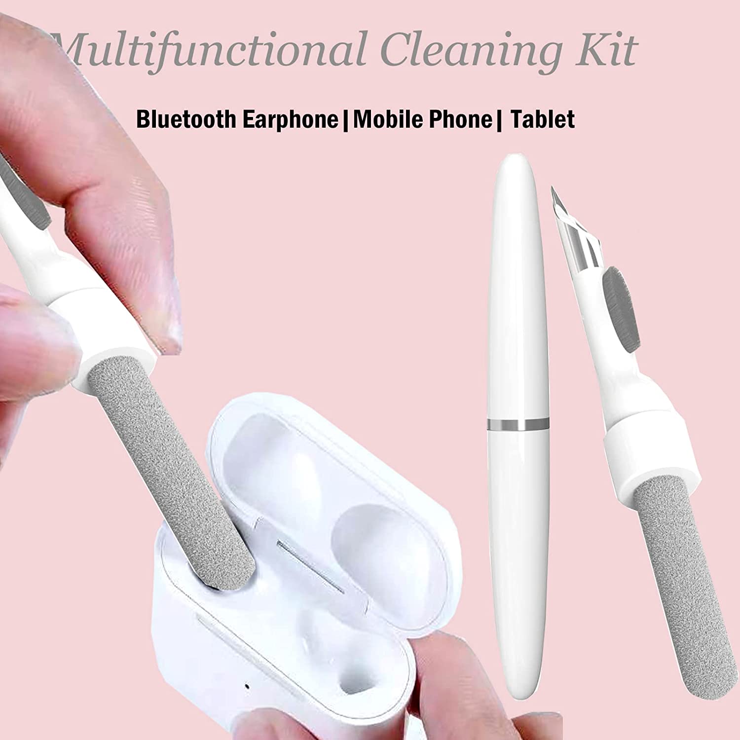 1.Separate double-head design: three-in-one earphone cleaning kit, with flocking sponge, high-density brush and metal nib, double-head hidden design, to meet a variety of cleaning needs.